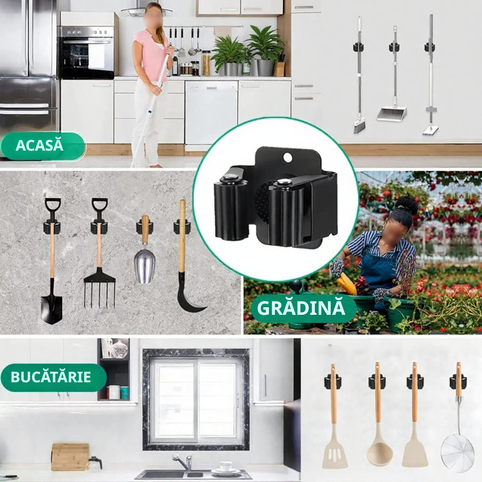 Suport organizator mop baie, fără cuie, fixare pe perete, multifuncțional